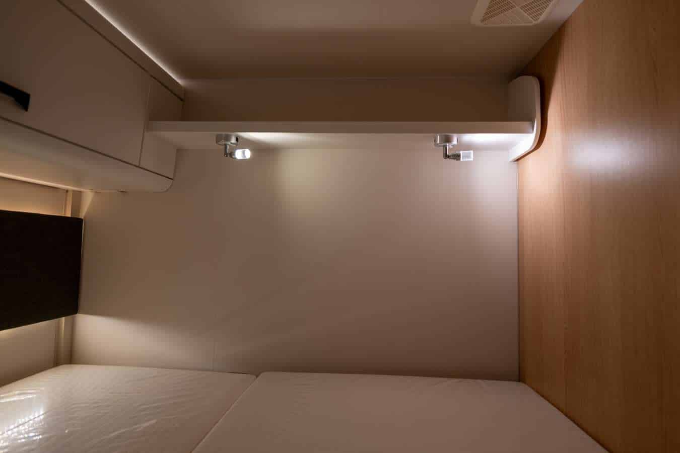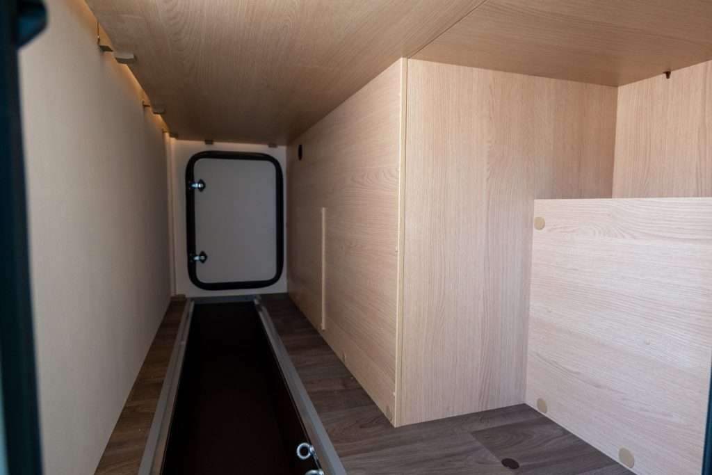 Oltre agli armadi interni distribuiti negli spazi di servizio, il garage sottosella con portelloni laterali e posteriore offre ampio spazio per attrezzature esterne. È possibile stivare biciclette, attrezzature sportive e accessori da campeggio senza sacrificare lo spazio interno dedicato al relax.</p></p>