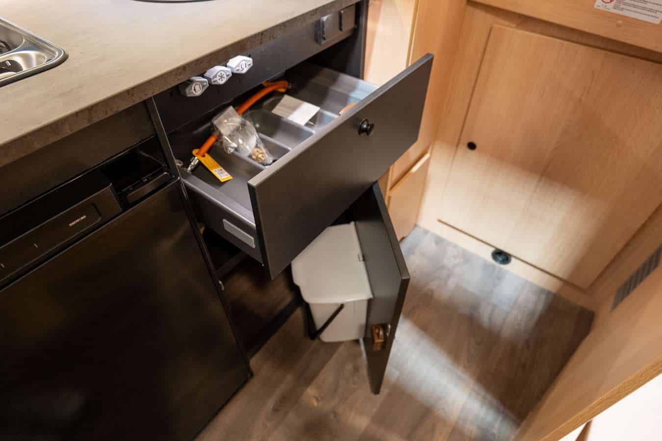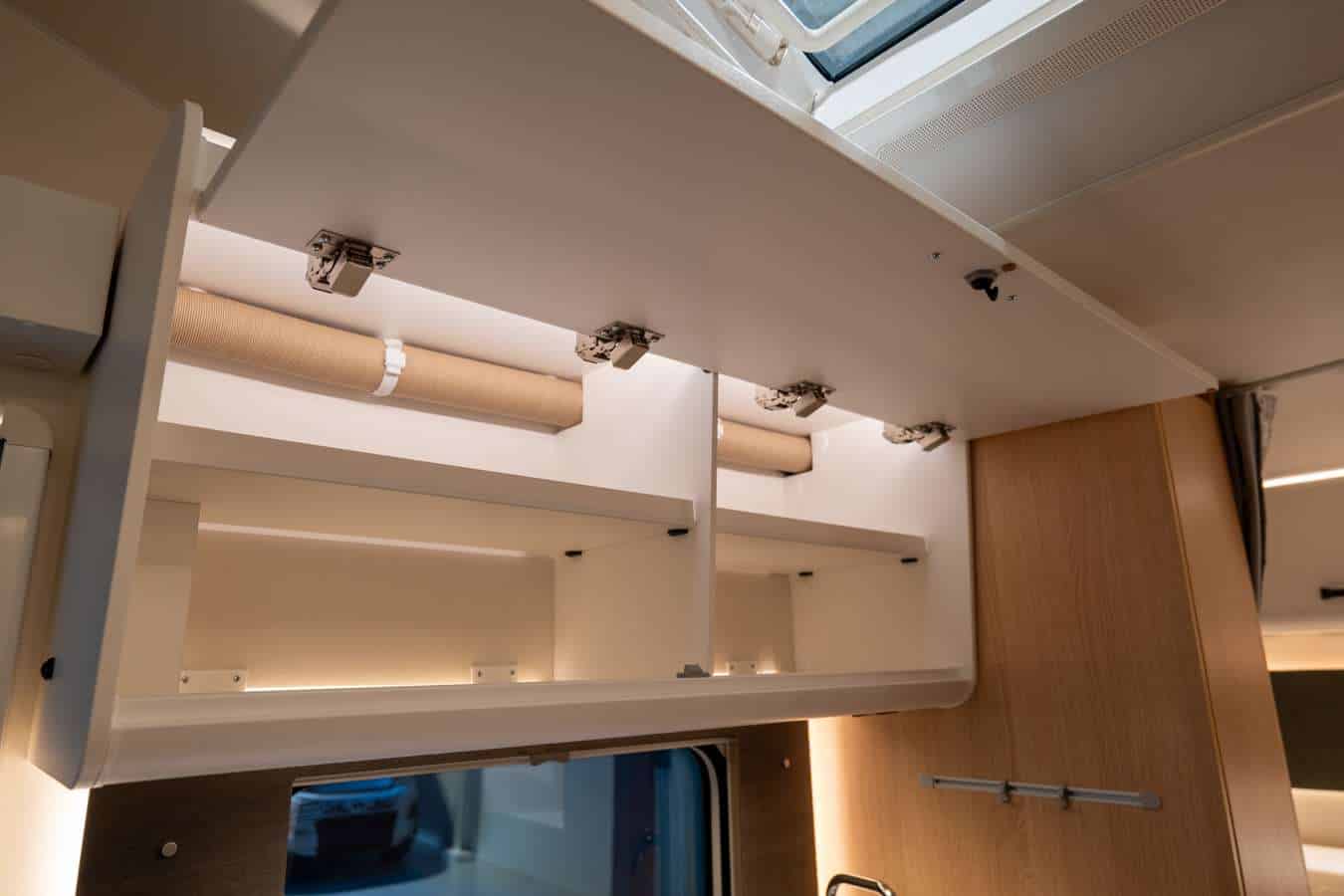 <p>Gli armadi strategicamente distribuiti garantiscono spazio di stivaggio per i vostri effetti personali, mantenendo tutto ordinato e accessibile. I portelloni del garage (con aperture laterali di 45 x 70 cm e posteriore di 65 x 110 cm) permettono di riporre attrezzature, biciclette e accessori da viaggio senza ingombrare gli spazi interni.</p></p>