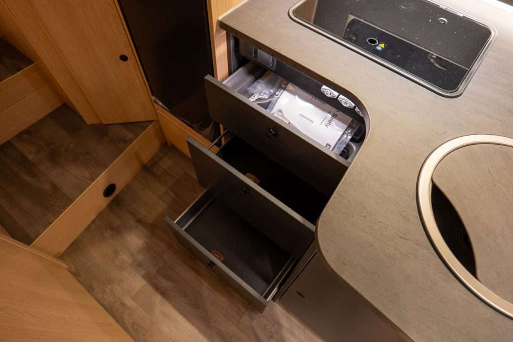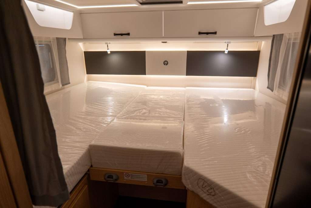 Sì, grazie al riscaldamento Combi 6 E con elemento elettrico, serbatoio acque grigie isolato e letto basculante con Clima-Plux: perfetto per campeggi freddi senza sacrificare il comfort.</p></p>
