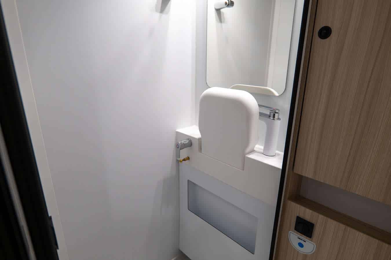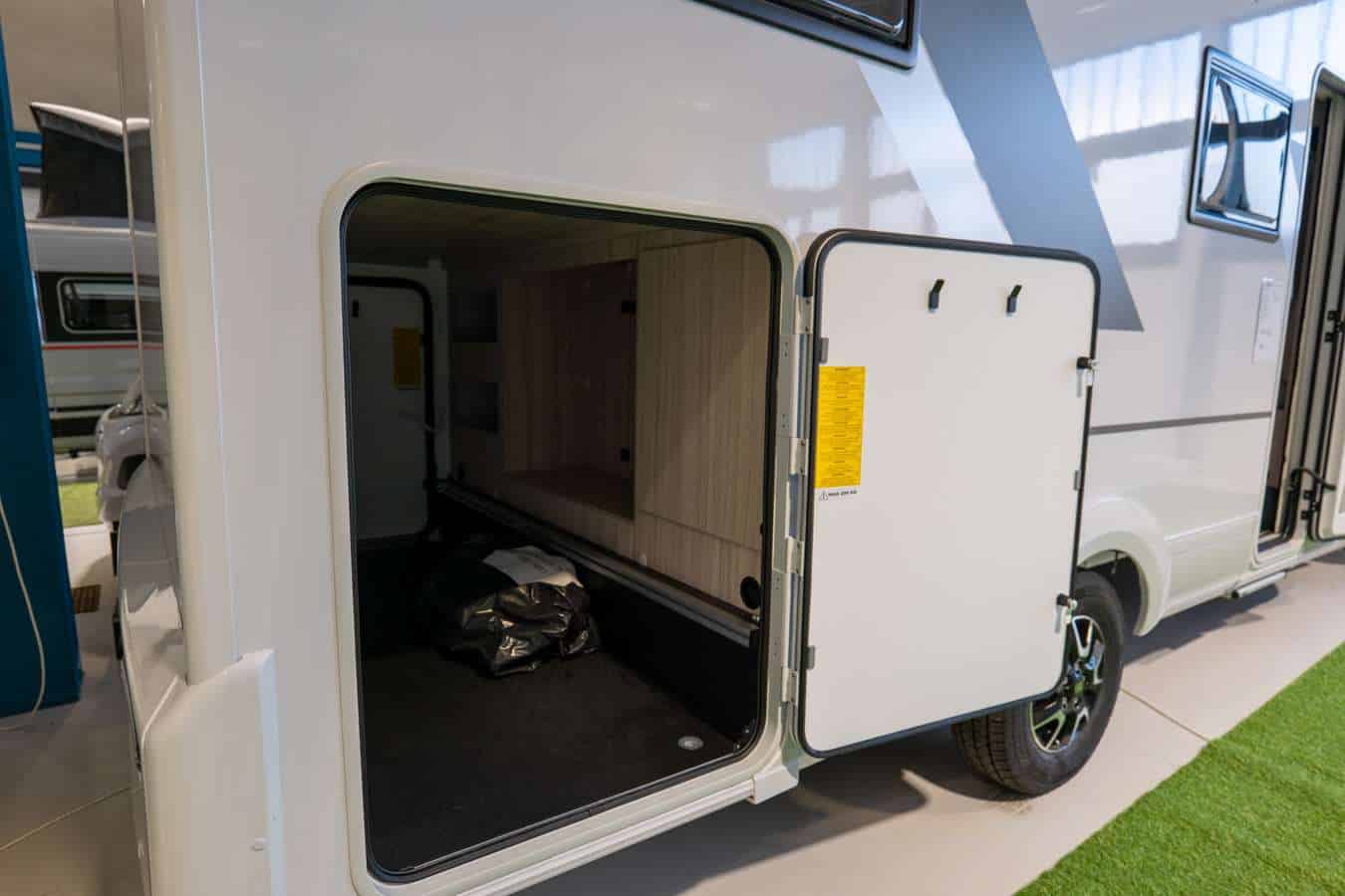 • Spazi di Stivaggio: L’ampio garage passante (portellone 218×120 cm) permette di trasportare facilmente attrezzature voluminose e bagagli per l’intero equipaggio.