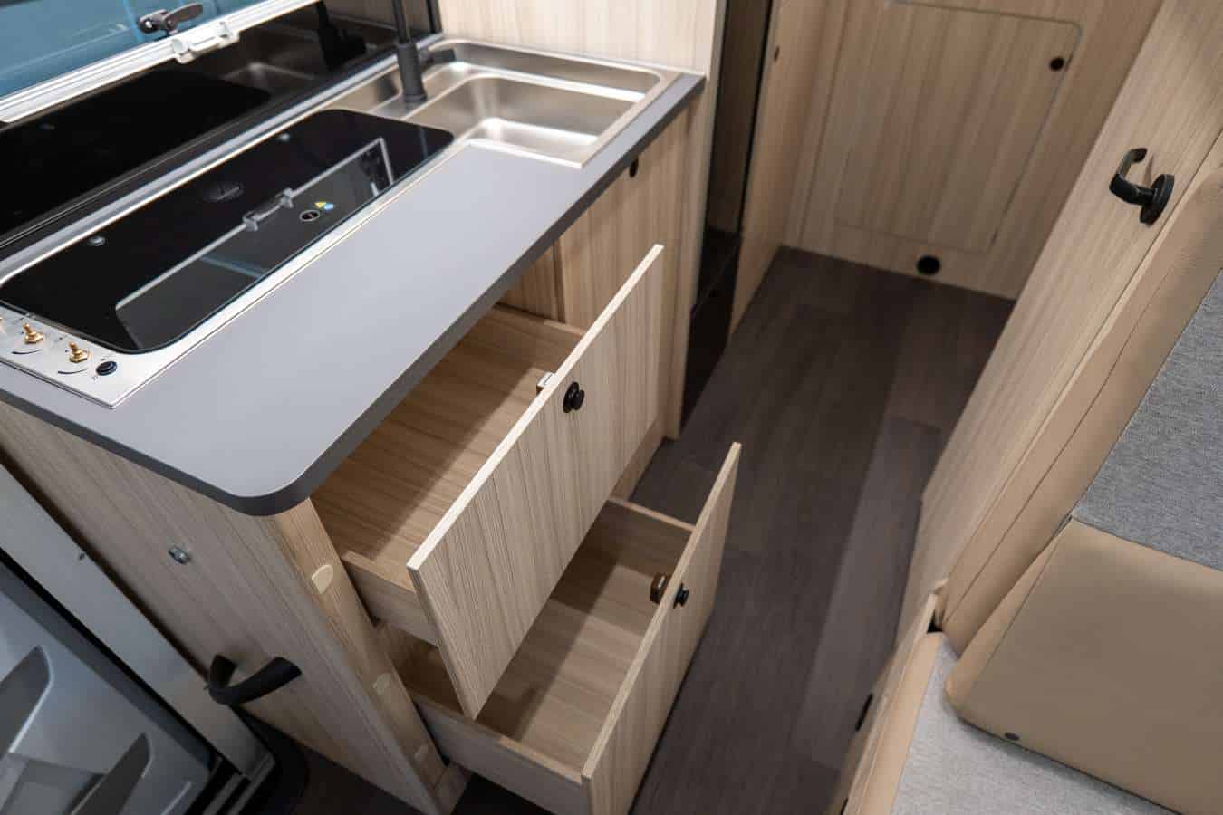 • Autonomia Potenziata: Il frigo trivalente a compressore da 157 litri e i capienti serbatoi per l’acqua (potabile 90L) assicurano un’autonomia ottimale, sia per la conservazione degli alimenti che per le utenze.