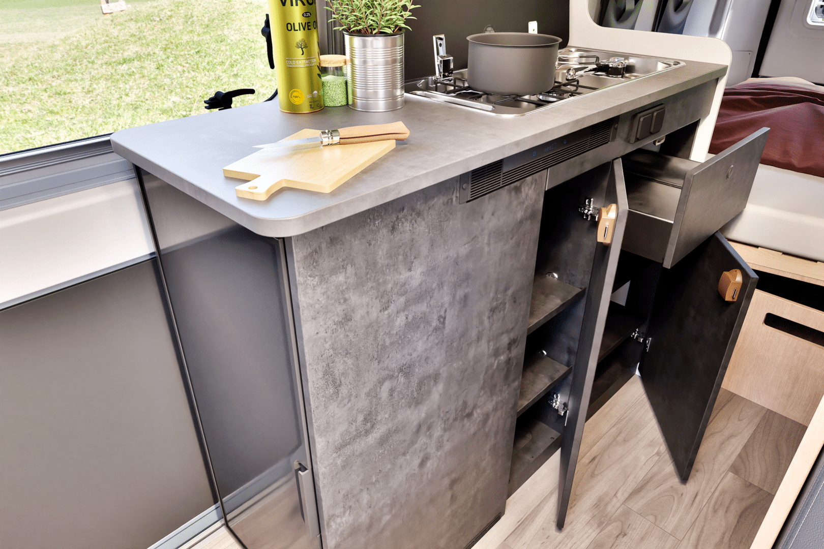 Ottima Autonomia: Dotato di un frigorifero a compressore performante, un serbatoio per l’acqua potabile da 100 litri e uno per il recupero da 85 litri, assicura l’indipendenza necessaria per le vacanze on the road.