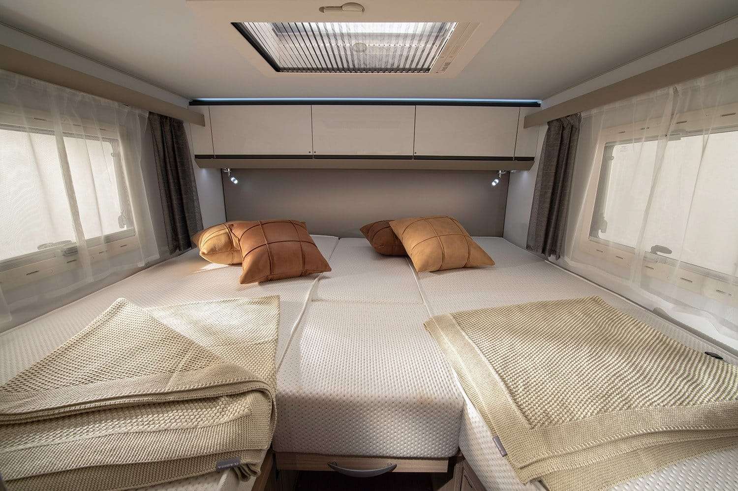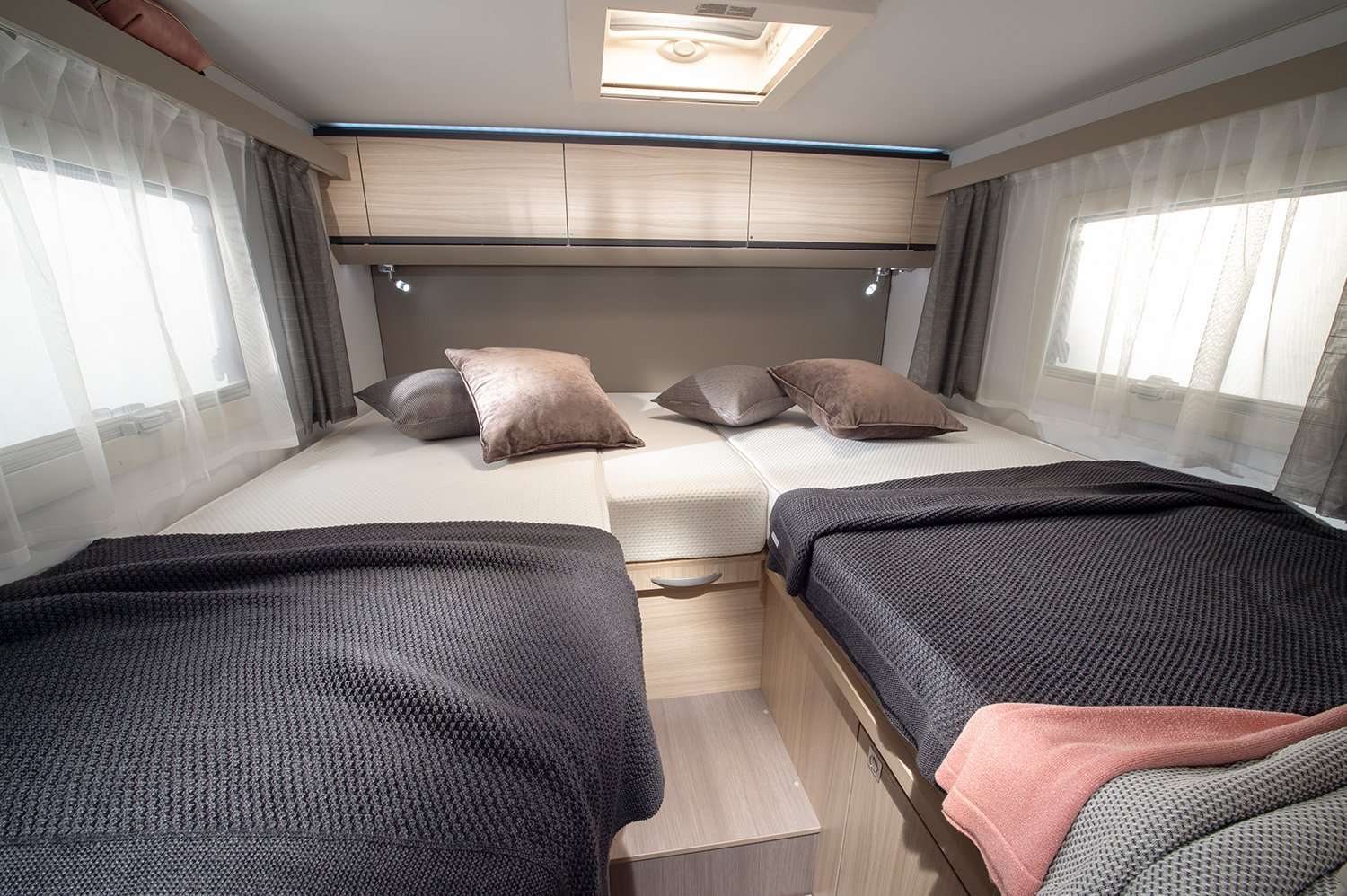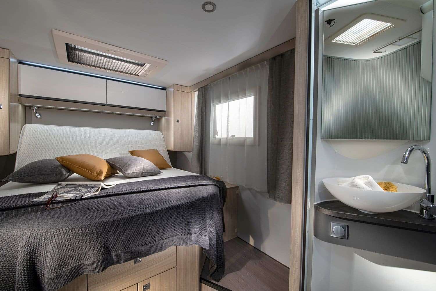 All’interno, Adria Compact sorprende con un’incredibile sensazione di spazio e luce, grazie all’ampia finestra panoramica e al design open space. Ogni dettaglio è pensato per il massimo comfort: dalla cucina smart con piano a 3 fuochi, al geniale bagno Duplex con parete girevole. La comoda zona notte con letti di alta qualità e l’ampio garage completano un veicolo che unisce in modo perfetto dimensioni compatte e una vivibilità eccezionale.