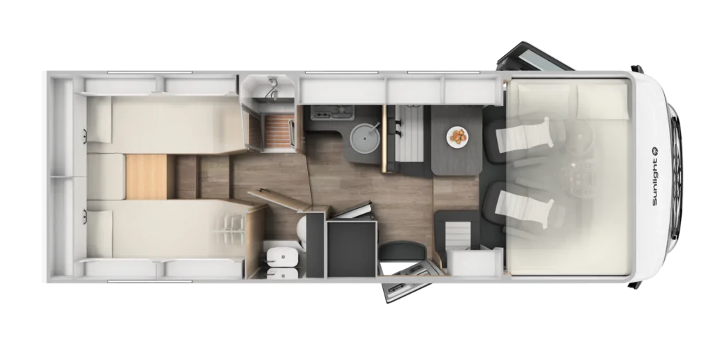 Vivi l’avventura da una prospettiva unica con i motorhome Sunlight Adventure Edition. Il design integrale fonde cabina e cellula in un unico, ampio spazio living, regalandoti una vista panoramica mozzafiato sulla strada e sul mondo. L’allestimento Adventure ne esalta il carattere audace, mentre gli interni intelligenti offrono massimo comfort e un grande garage per la tua attrezzatura, per chi non accetta compromessi tra stile e funzionalità.