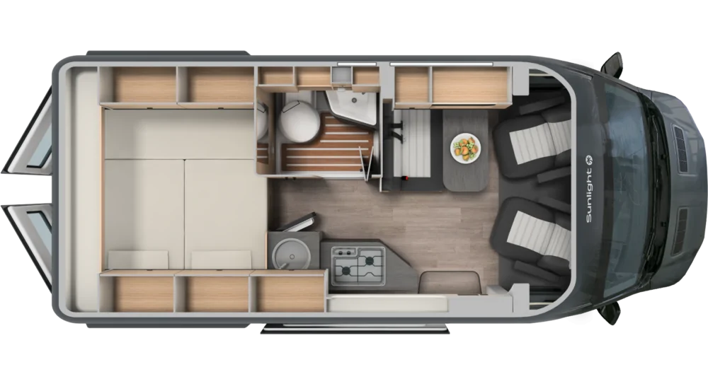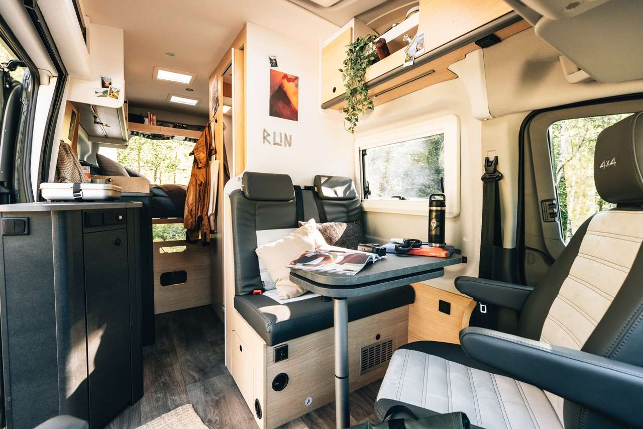 Dopo una giornata di adrenalina, il Cliff 4×4 Greentrek ti accoglie in un interno funzionale e confortevole, il tuo campo base perfetto. Costruito sul robusto telaio Ford Transit, offre affidabilità tedesca e un layout intelligente con un comodo letto trasversale e ampi spazi per la tua attrezzatura. Ogni dettaglio è pensato per offrirti il massimo del comfort, unendo la solidità di un vero fuoristrada alla praticità di un van moderno.