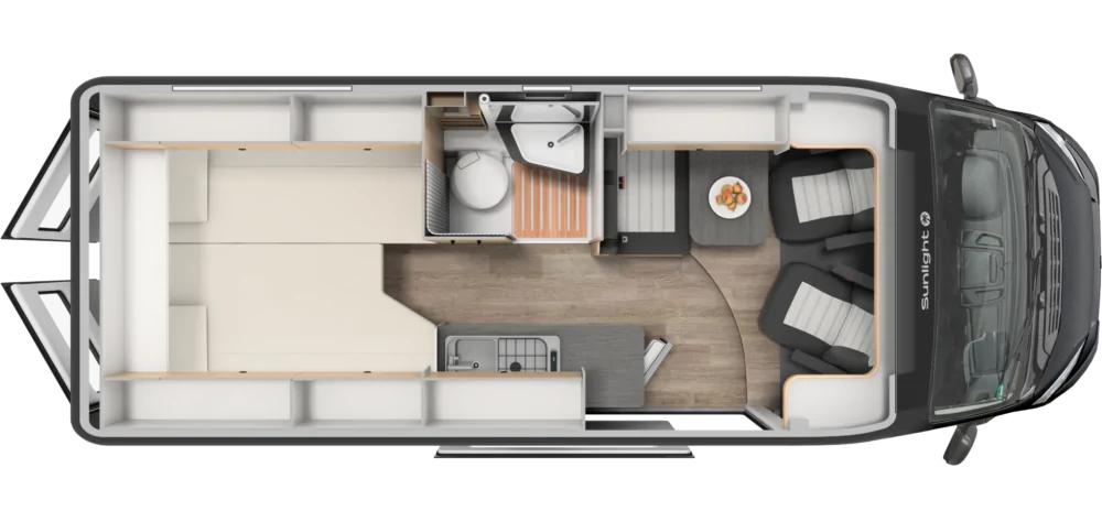 Il Sunlight Cliff X è un capolavoro di funzionalità. L’innovativo bagno Vario girevole massimizza lo spazio, offrendo una doccia confortevole senza compromessi. La zona notte ospita un ampio letto trasversale che garantisce un riposo eccellente dopo una giornata di esplorazione. Costruito su telaio Fiat Ducato e con la solida qualità tedesca, ogni dettaglio è pensato per offrire un’esperienza di viaggio pratica e senza pensieri.